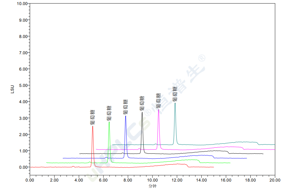 測茯苓中的葡萄糖,符合2025版《中國藥典》。減少背景噪音干擾,顯示出與傳統(tǒng)氨基柱不同的保留能力,能作為傳統(tǒng)氮基柱的互補選擇。