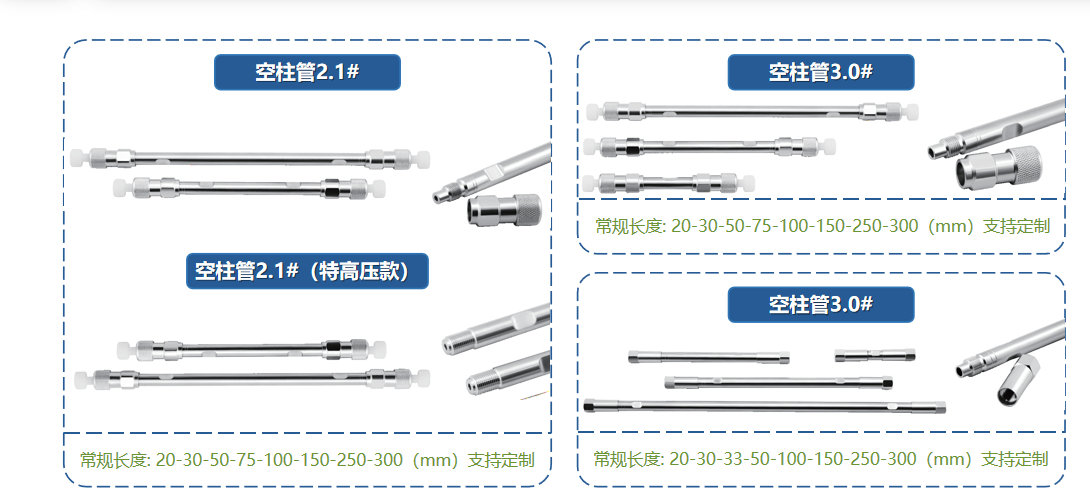 此外,恒譜生色譜柱空柱管規(guī)格齊全,涵蓋從分析到制備的多種規(guī)格,柱管內(nèi)徑從 2.1mm 到 50mm 不等,長度從 20mm 到 1000mm 應(yīng)有盡有。這種豐富的規(guī)格選擇能夠滿足不同用戶在各種分析和制備場景下的個(gè)性化需求,無論是微量樣品的精細(xì)分析,還是大量樣品的規(guī)?;苽洌寄苷业竭m配的空柱管,為色譜技術(shù)在不同領(lǐng)域的廣泛應(yīng)用提供了極大的便利。