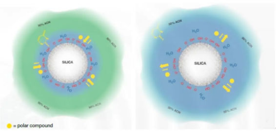 固定相和水就形成一層“親水層”。而HILIC對極性化合物的分離機制就取決于固定相結構以及“親水層”的厚度。