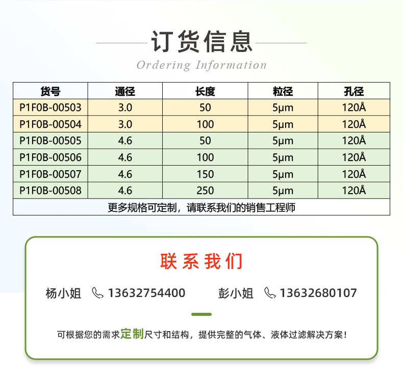 常用產(chǎn)品規(guī)格(mm) 3.0*50、3.0*100、4.6*50、4.6*100、4.6*150、4.6*250